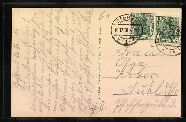 alte Ansichtskarte, gelaufen 1918, Stempelspur, guter Zustand