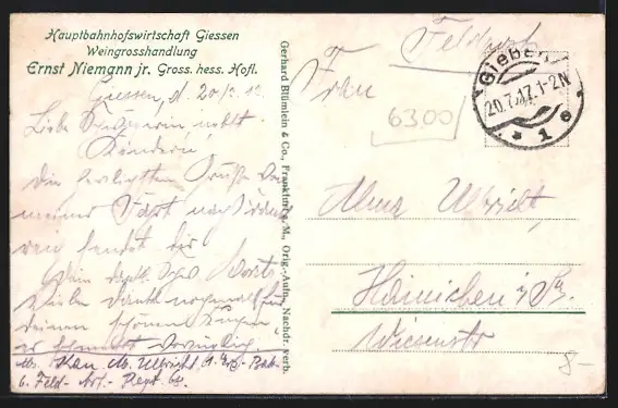 gelaufen 1917, Eckknick oben rechts, guter Zustand