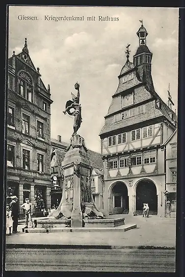 AK Giessen, Kriegerdenkmal mit Rathaus