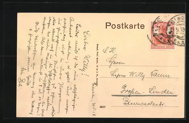 alte Ansichtskarte, gelaufen 1918, Stempelspur, guter Zustand