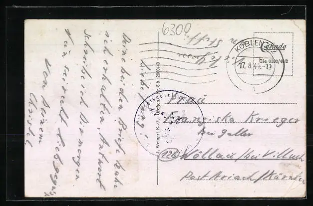 alte Ansichtskarte, gelaufen 1944, Eckknicke li., guter Zustand