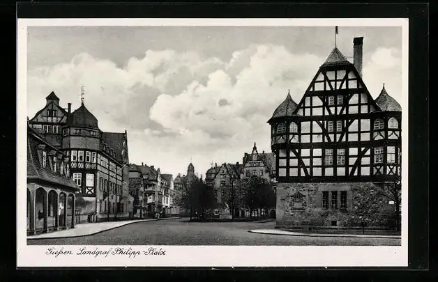 AK Giessen, Landgraf Philipp-Platz mit Fachwerkhäusern