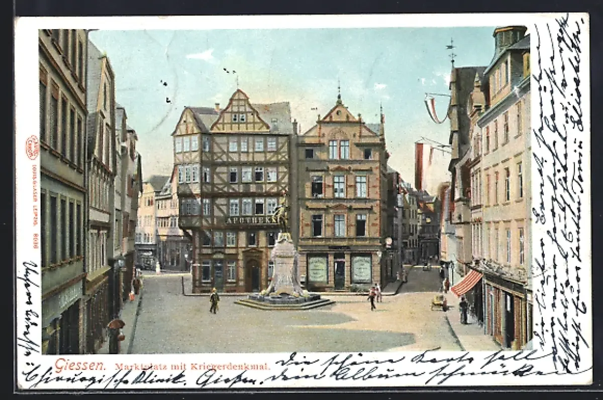 AK Giessen, Marktplatz mit Kriegerdenkmal