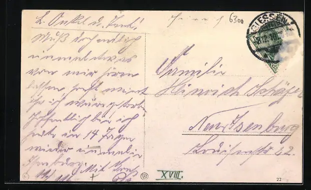 gelaufen 1910, Briefmarke entfernt, guter Zustand