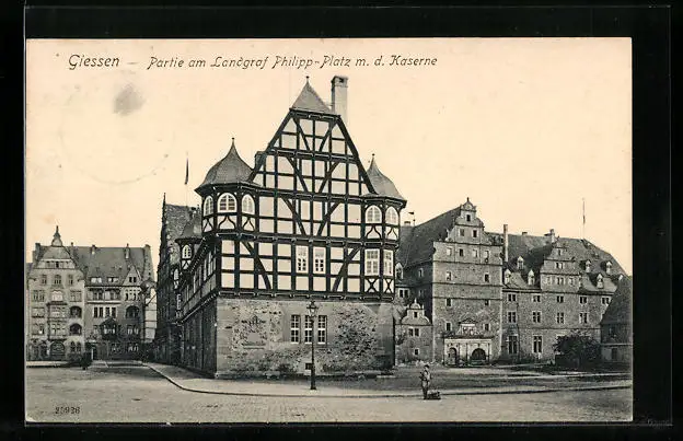 AK Giessen, Partie am Landgraf Philipp-Platz m. d. Kaserne