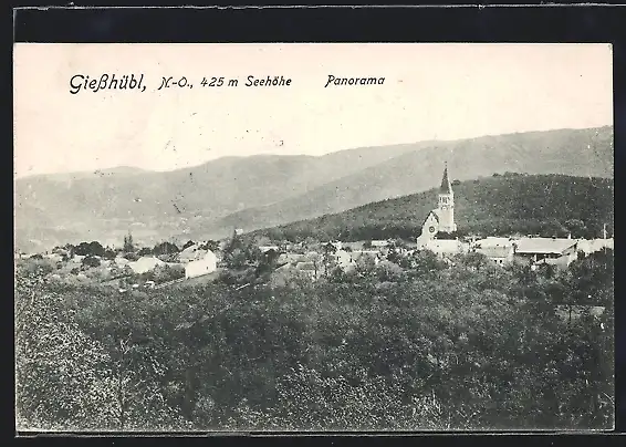 AK Giesshübl, Panorama der Ortschaft mit der Kirche