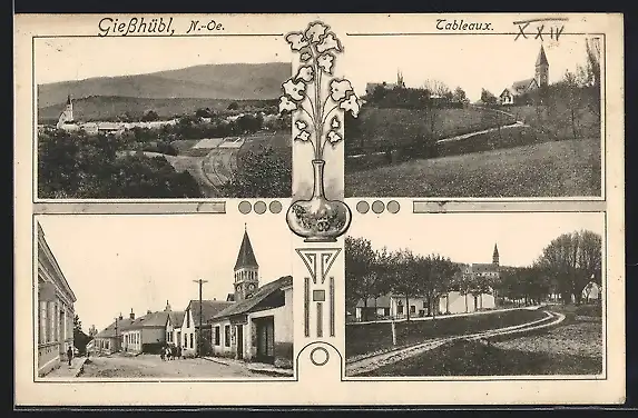 AK Giesshübl, Strassenpartie mit Geschäft, Tableaux, Ortspartie