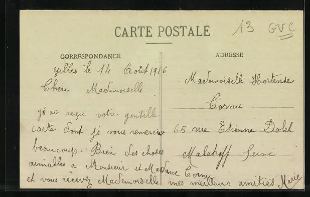 alte Ansichtskarte, ungelaufen, Rückseite beschrieben 1916, guter Zustand