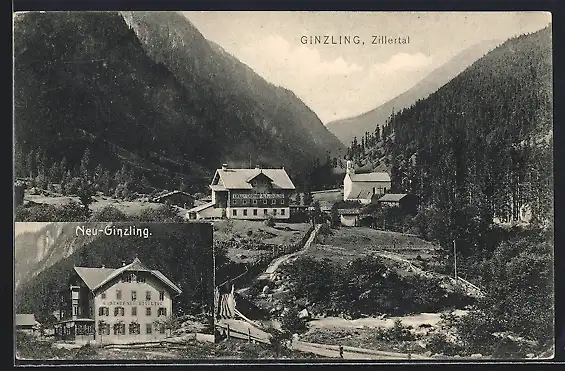 AK Ginzling, Krolls Gasthof Alt-Ginzling, Gasthof Neu-Ginzling