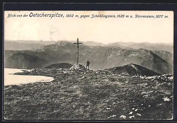 AK Gipfelkreuz auf dem Ötscher gegen Scheiblingstein und Dürrenstein