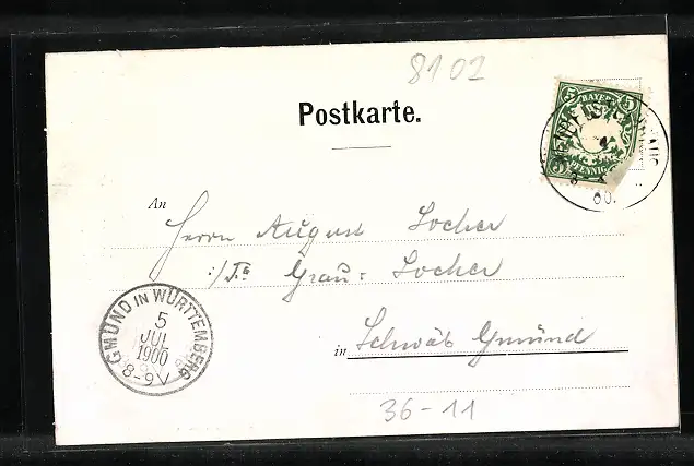 alte Ansichtskarte, gelaufen 1900, guter Zustand
