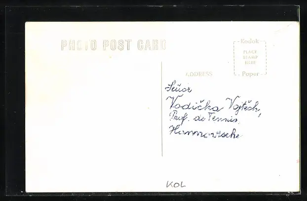 Personenbezogene Daten auf der Rückseite der Karte wurden durch blauen Textmarker unkenntlich gemacht. Die blauen Stellen sind auf die Vorderseite durchgeweicht und wirken sich negativ auf das Postkartenfoto aus