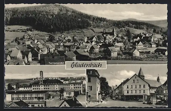 AK Gladenbach, Schule, Marktstrasse, Ortsansicht