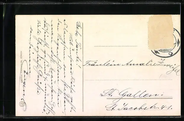 alte Ansichtskarte, gelaufen, Briefmarke entfernt, rückseitig Oberflächenschaden, guter Zustand