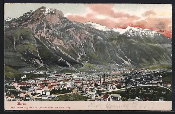 AK Glarus, Panorama mit Bergen