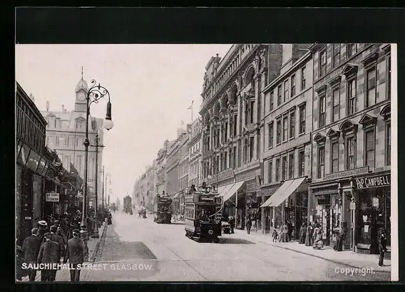 AK Glasgow, Sauchiehall Street, Strassenbahn