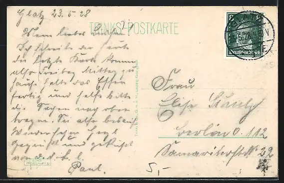 alte Ansichtskarte, gelaufen 1928, guter Zustand