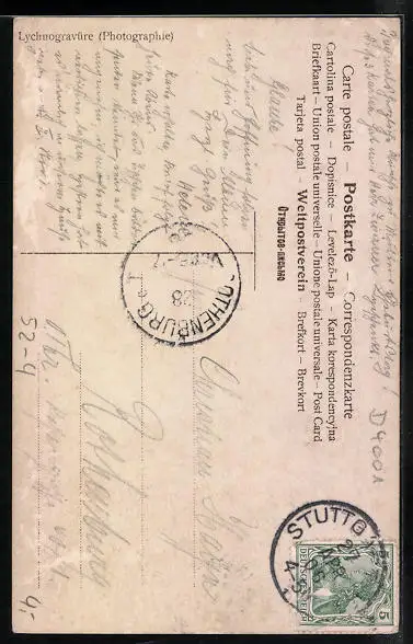 alte Ansichtskarte, gelaufen 1906, Kleberest oben re., guter Zustand