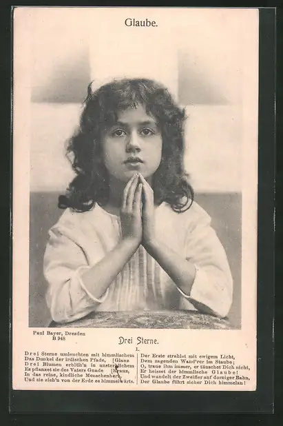 AK Glaube, Betendes Mädchen, Drei Sterne, Allegorie