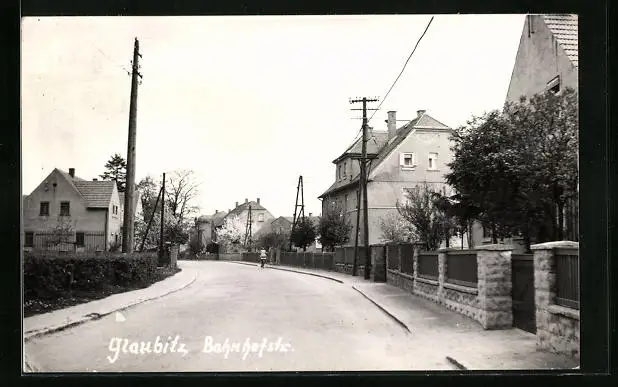 AK Glaubitz, Radfahrer in der Bahnhofstrasse