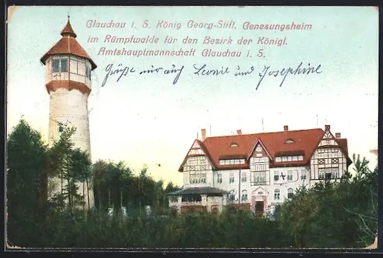 AK Glauchau i. S., König Georg-Stift, Genesungsheim im Rümpfwalde, mit Turm
