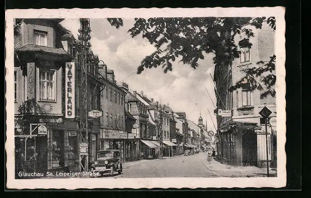 AK Glauchau i. Sa., Geschäfte in der Leipziger Strasse