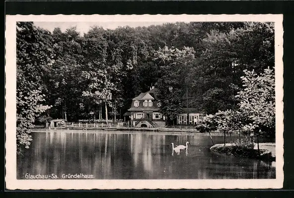 AK Glauchau i. Sa., Gründelhaus am Schwanensee