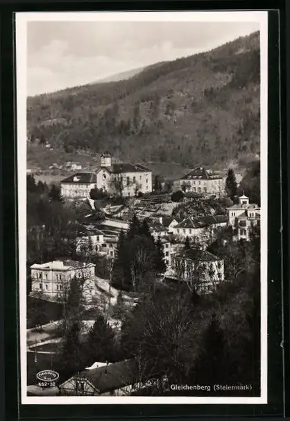 AK Gleichenberg, Ortsansicht an einem wolkigen Tag