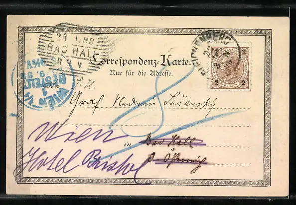 alte Ansichtskarte, gelaufen 1899, Stempelspur, Eckknick li. oben, guter Zustand