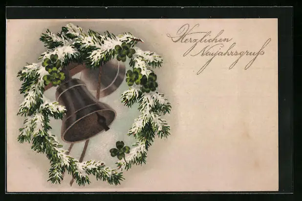 AK Glocken umringt von Tannenzweigen, Neujahr