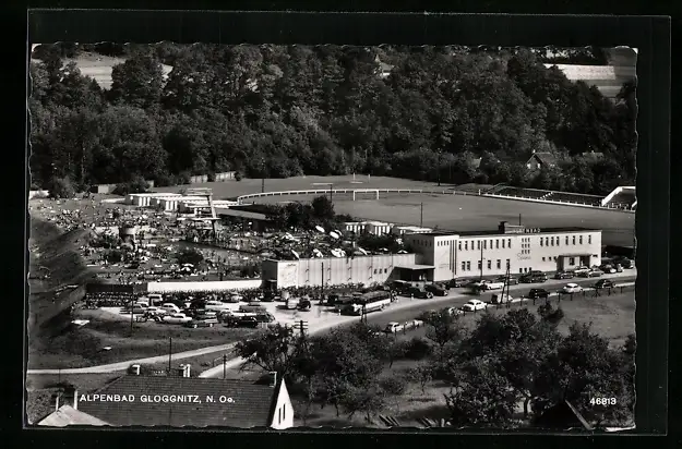 AK Gloggnitz, Blick auf Alpenbad mit Sauna