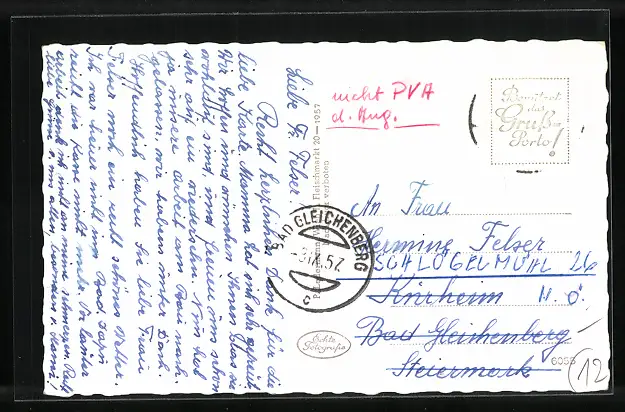 alte Ansichtskarte, gelaufen 1957, Briefmarke entfernt, guter Zustand