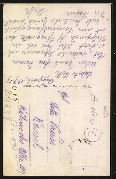 alte Ansichtskarte, gelaufen 1929, Briefmarke entfernt, guter Zustand