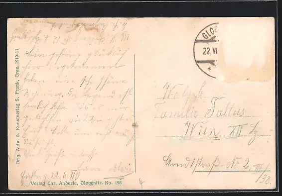 alte Ansichtskarte, gelaufen 1911, Briefmarke entfernt, rückseitig Oberflächenschaden, guter Zustand