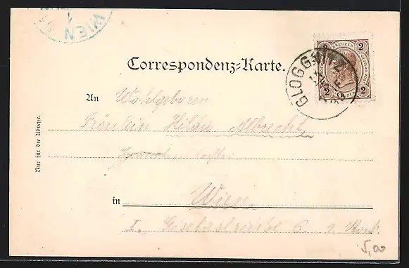 alte Ansichtskarte, gelaufen 1899, Stempelspur, guter Zustand