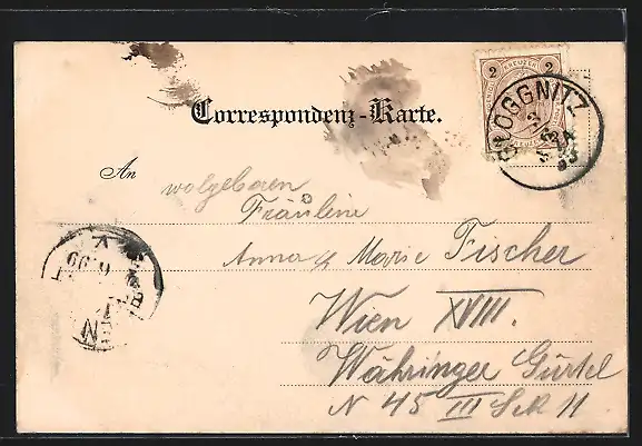 alte Ansichtskarte, gelaufen 1899, guter Zustand