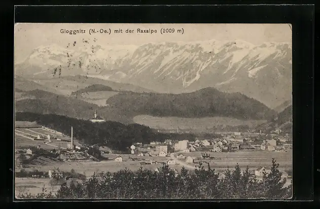 AK Gloggnitz, Teilansicht mit der Raxalpe