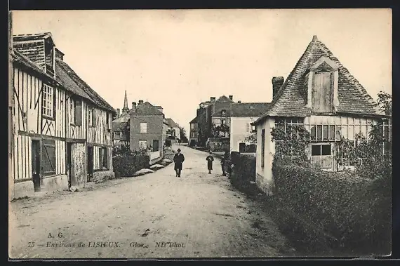 AK Glos, Strassenpartie mit Gebäudeansicht