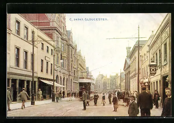AK Gloucester, Strassenpartie mit Strassenbahn