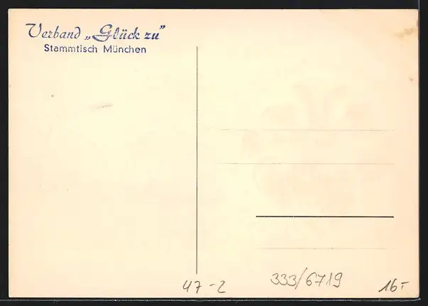 Personenbezogene Daten auf der Rückseite der Karte wurden durch blauen Textmarker unkenntlich gemacht. Die blauen Stellen sind auf die Vorderseite durchgeweicht und wirken sich negativ auf das Postkartenfoto aus