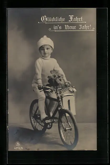 AK Glückliche Fahrt in`s Neue Jahr!, Kind auf Fahrrad