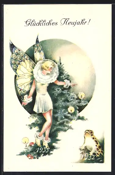 AK Glückliches Neujahr!, Fee und Frosch mit Jahreszahl 1933