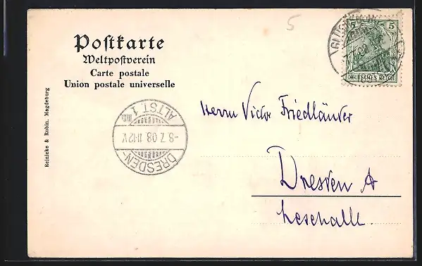 alte Ansichtskarte, gelaufen 1908, guter Zustand