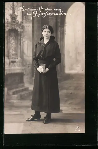 AK Glückwünsche zur Konfirmation, Junge Dame mit Gebetsbuch