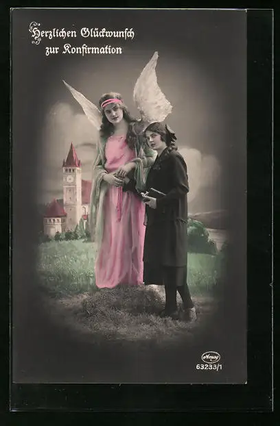 AK Glückwünsche zur Konfirmation mit Schutzengel