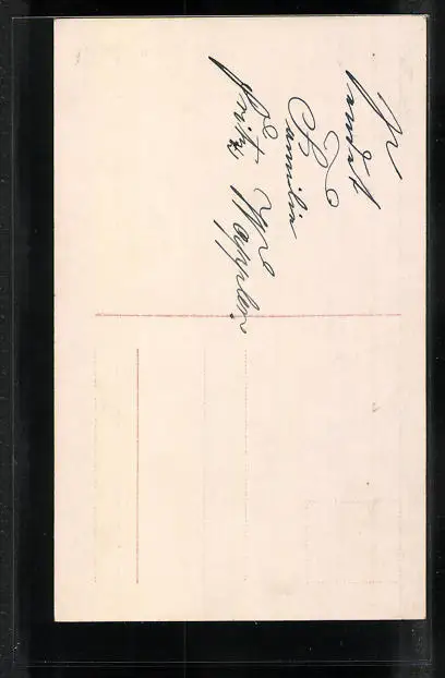 Personenbezogene Daten auf der Rückseite der Karte wurden durch blauen Textmarker unkenntlich gemacht. Die blauen Stellen sind auf die Vorderseite durchgeweicht und wirken sich negativ auf das Postkartenfoto aus