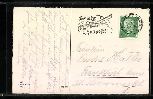 Personenbezogene Daten auf der Rückseite der Karte wurden durch blauen Textmarker unkenntlich gemacht. Die blauen Stellen sind auf die Vorderseite durchgeweicht und wirken sich negativ auf das Postkartenfoto aus