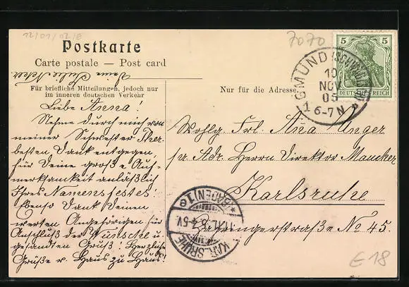 alte Ansichtskarte, gelaufen 1905, Einrisse oben, guter Zustand