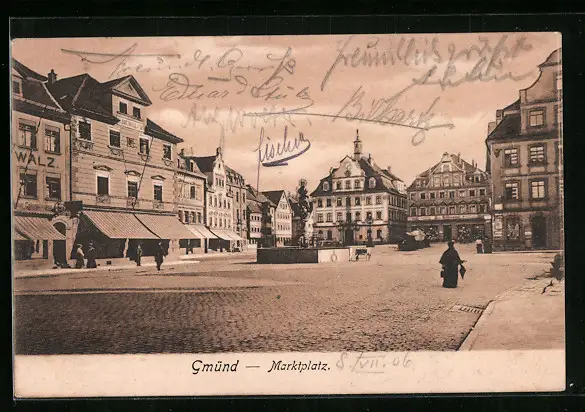 AK Gmünd, Marktplatz mit Brunnen