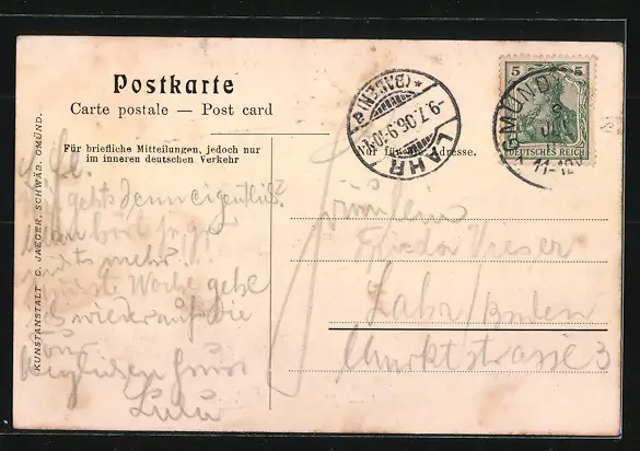 alte Ansichtskarte, gelaufen 1906, guter Zustand